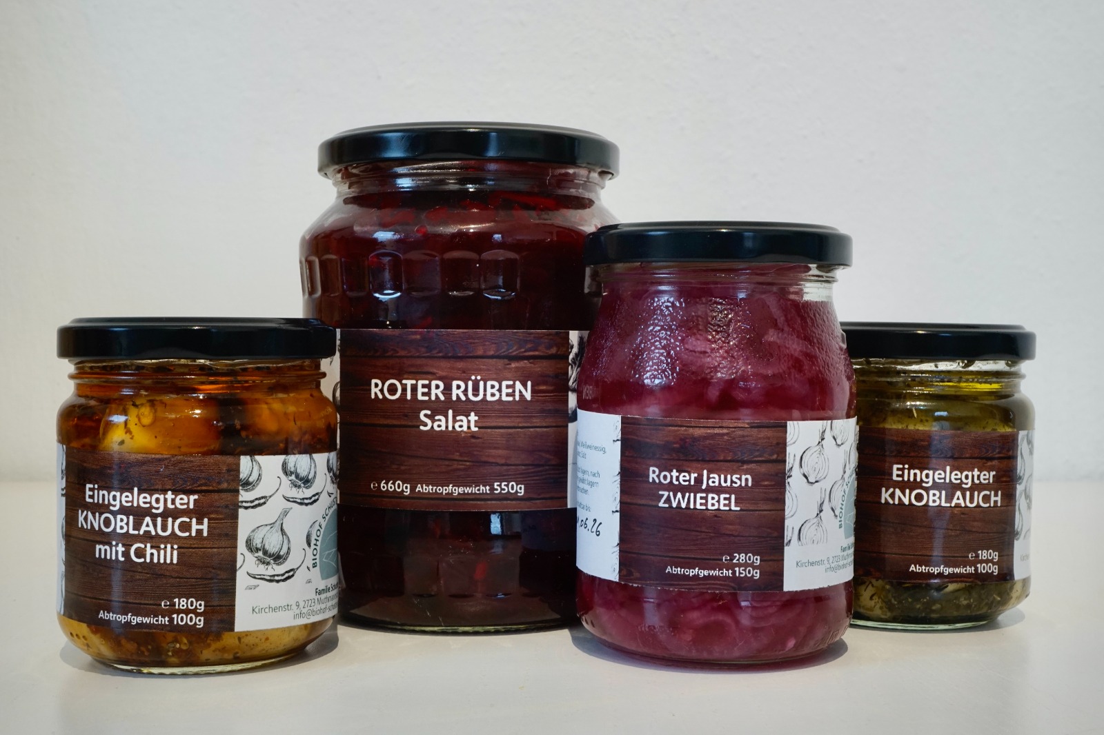Verarbeitete & eingelegte ProdukteEingelegter Knoblauch mit Kräutern oder Chili, Knoblauchpaste, Roter Jausn Zwiebel, Roter Rübensalat