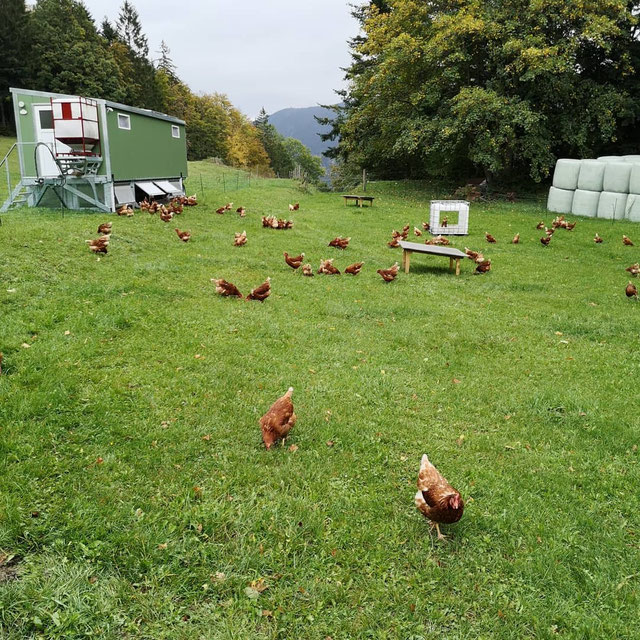 Eier aus mobiler Freilandhaltung (Familie Postel- Miesenbach), Ostereier (gekocht & gefärbt - nur vor Ostern), Wachteleier (nach Verfügbarkeit)